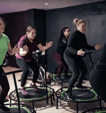 Jumping es un sistema de entrenamiento dinámico sobre un mini trampolín. Al saltar, activas más de 400 músculos simultáneamente, mejorando el equilibrio y el drenaje linfático sin lastimar tus rodillas. Es una forma increíble y segura de acelerar el metabolismo y tonificar el abdomen.